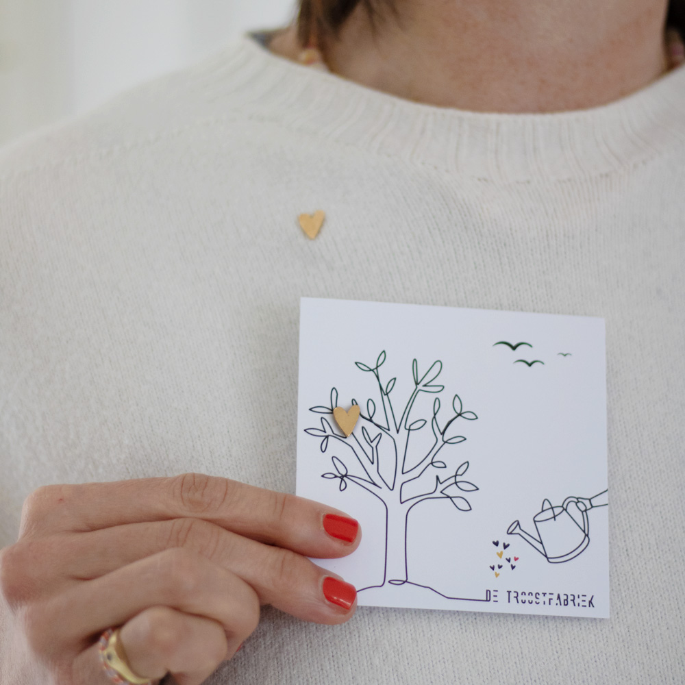 Uit de grond van je hart, groeit altijd iets moois. Dit kaartje met daarop de mooie hartpin is bedoeld voor iedereen die liefde wil verspreiden en iedereen die wel wat extra liefde kan gebruiken.